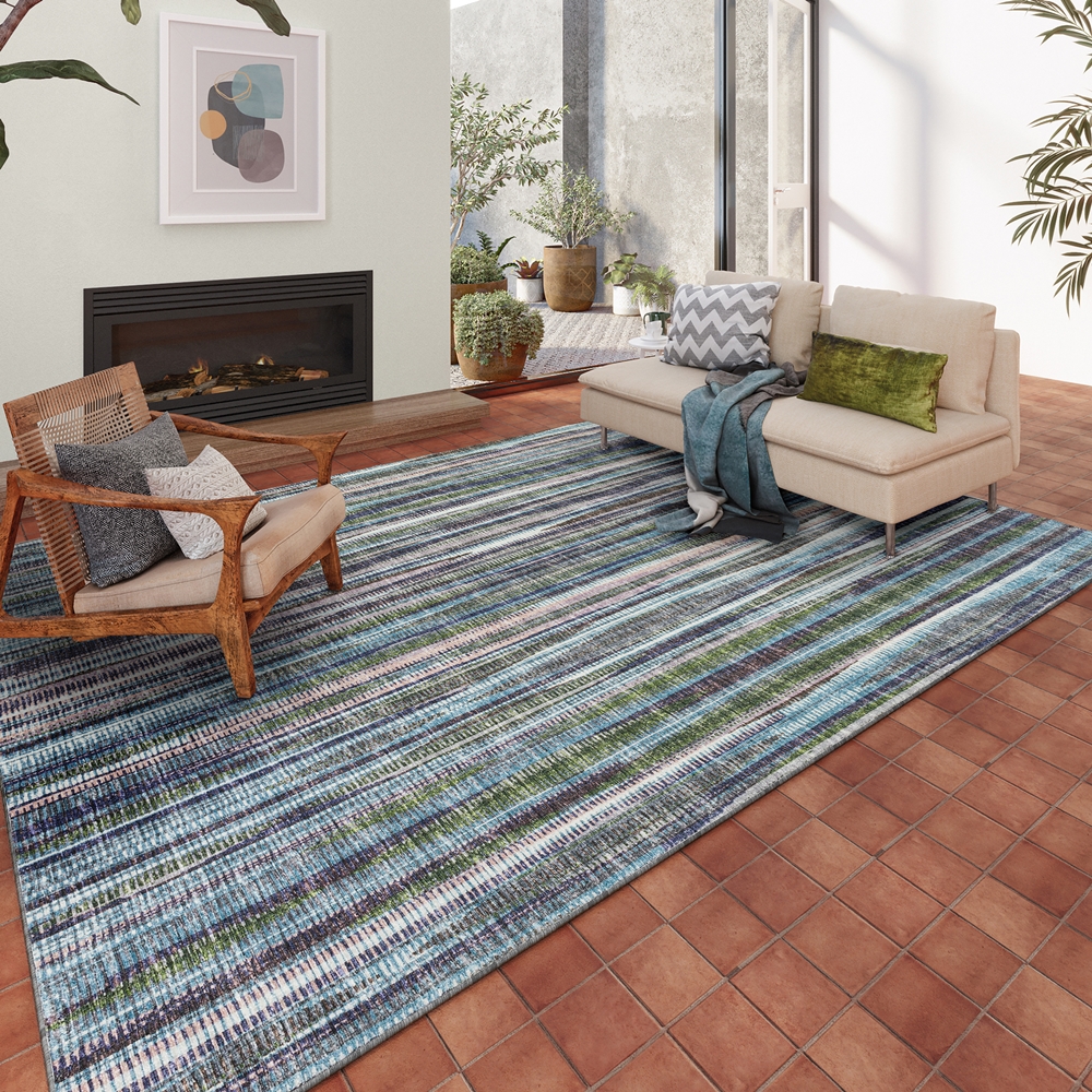 Amador collection is the ultimate transitional rug collection. Final crafting in USA using domestic processing on an imported substrate. Casual dynamic stripes using state-of-the-art prismatic color processing technology. This allows for thousands of color combinations and shading in each design. These area rugs are UV stabilized, fade resistant and stain resistant for long lasting color and durability. Extremely heavy, dense pile with soft feel and cushion with non-skid rubber backing incorporated. This rug collection is perfect for all family members and pet owners. Vacuum your rug regularly or shake out. Use straight suction vacuum only, spot clean with clear water.