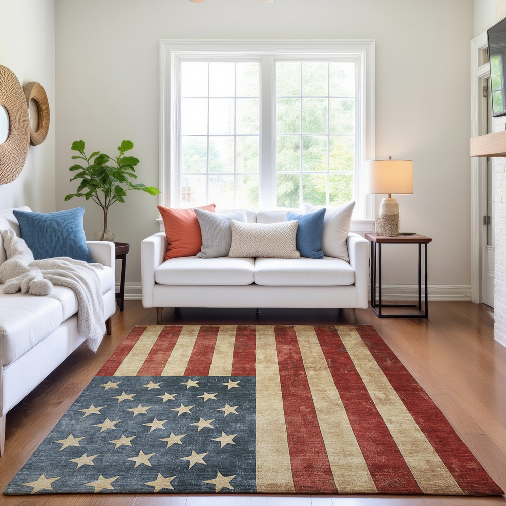 The Americana rug collection pairs homegrown comfort with flag-inspired artistry. Its soft feel and hassle-free care make it ideal for households that value both function and flair. Made in the USA using a blend of foreign and domestic materials, each rug includes a plush microfiber surface and premium non-slip backing.