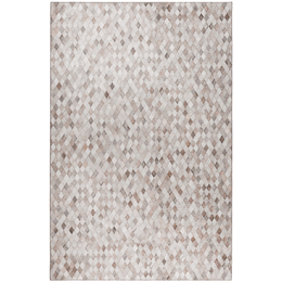 Durango is a faux hide patchwork collection. The details on these faux hide rugs look so real you will wow your guests. This stylish rug features neutral colors with gradient movement in a variety of mosaic shapes and patterns. Featuring an ultra-soft and ultra thin pile, each rug is made with 100% polyester pile complete with a non-skid backing. Final crafting in USA using domestic processing on an imported substrate. They are UV Stabilized for indoor and cover outdoor spaces. Shake out or use straight suction with vacuum, do not use a beater bar. Machine washable in cold water and air dry, some sizes may be too large for a residential washing machine and is family and pet friendly.