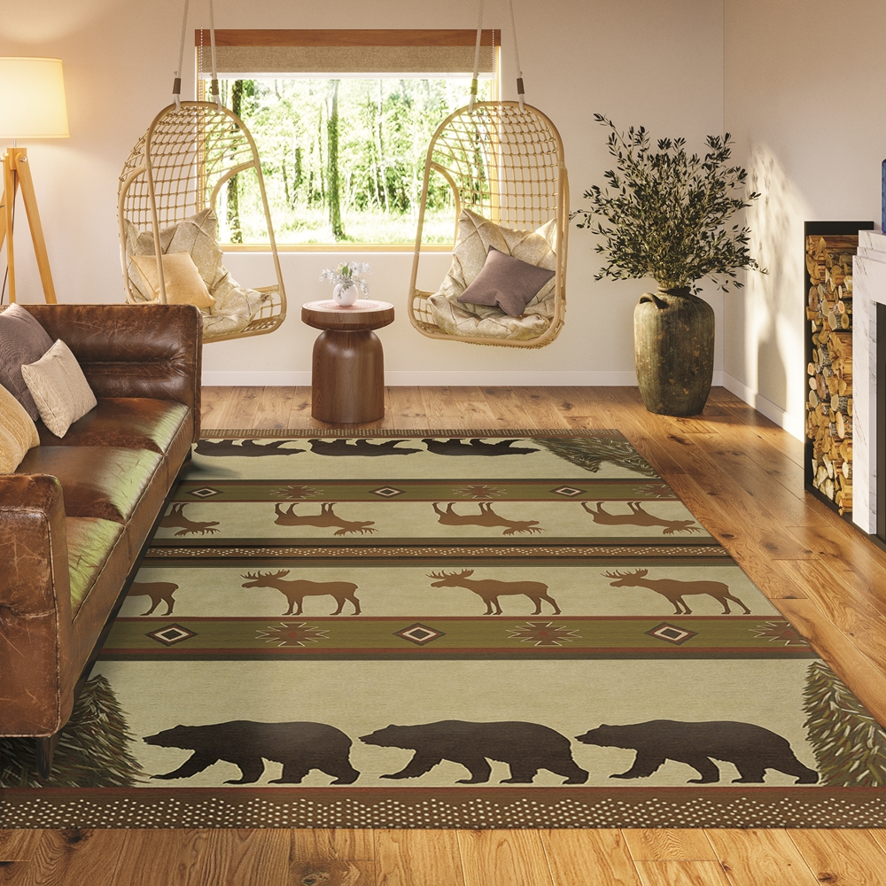 Excursion collection has great casual lodge designs, rustic motifs perfect for lake house, cabin, or man cave. Featuring an ultra-soft and ultra thin pile, each rug is made with 100% polyester pile complete with a non-skid backing. Final crafting in USA using domestic processing on an imported substrate. They are UV Stabilized for indoor and outdoor spaces. Machine washable in cold water and air dry, some sizes may be too large for a residential washing machine and is family and pet friendly.