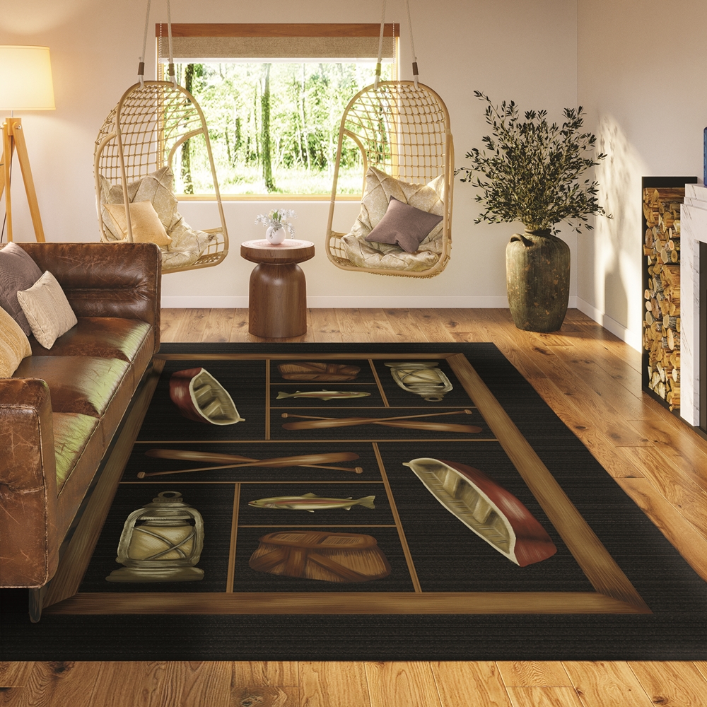Excursion collection has great casual lodge designs, rustic motifs perfect for lake house, cabin, or man cave. Featuring an ultra-soft and ultra thin pile, each rug is made with 100% polyester pile complete with a non-skid backing. Final crafting in USA using domestic processing on an imported substrate. They are UV Stabilized for indoor and outdoor spaces. Machine washable in cold water and air dry, some sizes may be too large for a residential washing machine and is family and pet friendly.