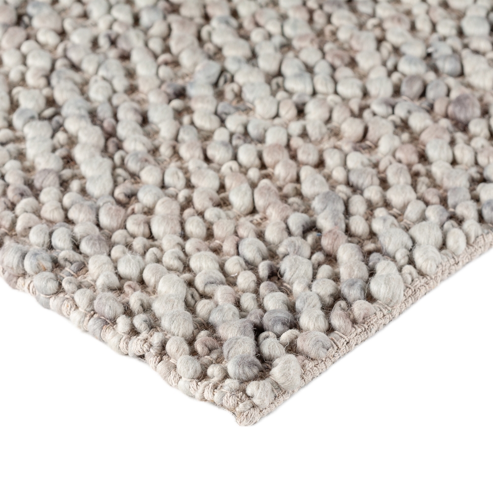 Let your floors do the talking with our hand-loomed rug, a blend of artistry and luxury. Crafted from multi-tonal chunky wool yarn, its distinctive cobblestone design and plush loop pile are bound to captivate every guest. Add this gem to your home and watch as it becomes the topic of many conversations.