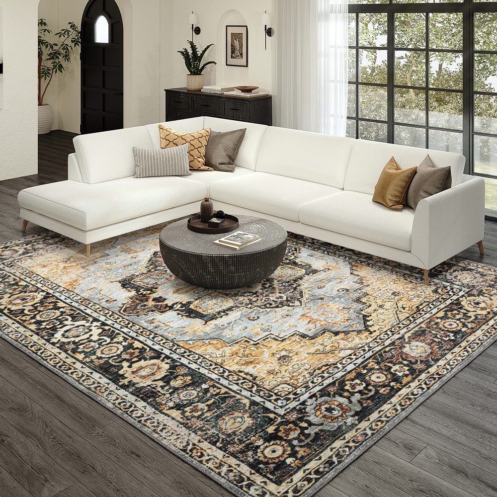 Our Jericho collection is the ultimate transitional rug collection. State of the art prismatic color processing technology allows for thousands of color combinations and shading. These area rugs are UV stabilized, fade resistant and stain resistant for long lasting color and durability. Extremely heavy, dense pile with soft feel and cushion with incorporated non-skid rubber backing. This rug collection is perfect for all family members and pet owners. Vacuum your rug regularly or shake out. Use straight suction vacuum only, spot clean with clear water.