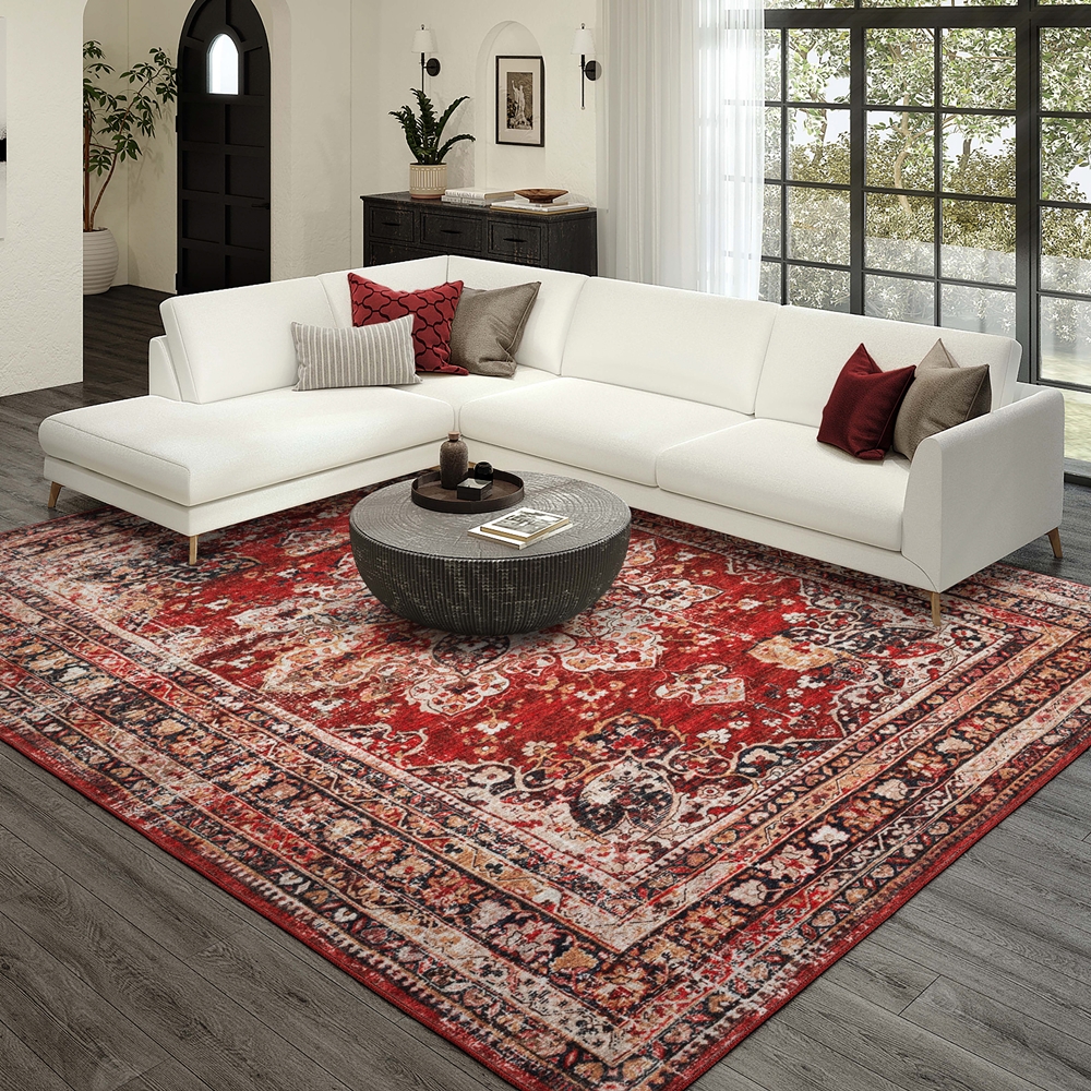 Our Jericho collection is the ultimate transitional rug collection. State of the art prismatic color processing technology allows for thousands of color combinations and shading. These area rugs are UV stabilized, fade resistant and stain resistant for long lasting color and durability. Extremely heavy, dense pile with soft feel and cushion with incorporated non-skid rubber backing. This rug collection is perfect for all family members and pet owners. Vacuum your rug regularly or shake out. Use straight suction vacuum only, spot clean with clear water.