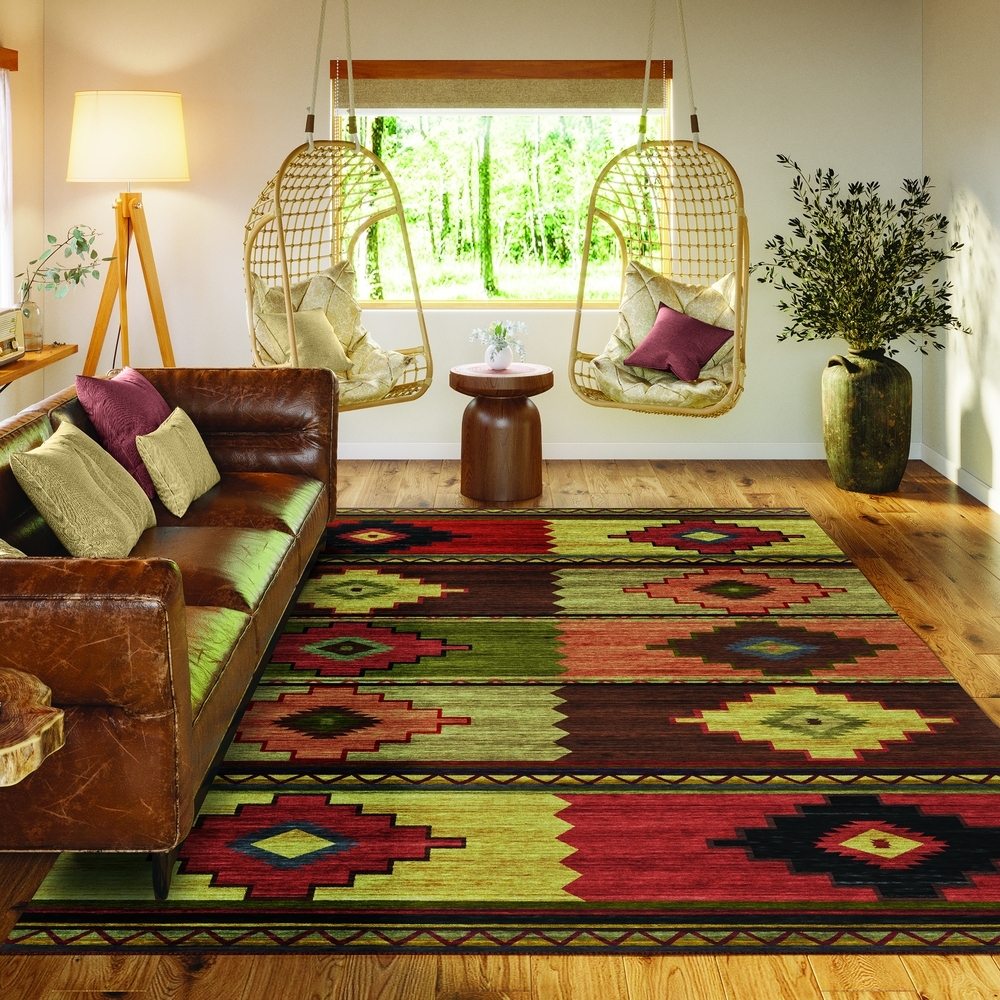 Phoenix collection has great casual southwestern lodge feel. Featuring an ultra-soft and ultra thin pile, each rug is made with 100% polyester pile complete with a non-skid backing. Final crafting in USA using domestic processing on an imported substrate. They are UV Stabilized for indoor and outdoor spaces. Machine washable in cold water and air dry, some sizes may be too large for a residential washing machine and is family and pet friendly.