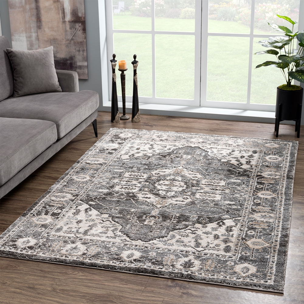 Regal and sophisticated, the elegant Portsmouth collection will bring a touch of class into your style. With modish designs and an elegant color pallet, this assortment of rugs will be the highlight of any décor. Power-loomed in Turkey using polyester and polypropylene for durability and longevity.