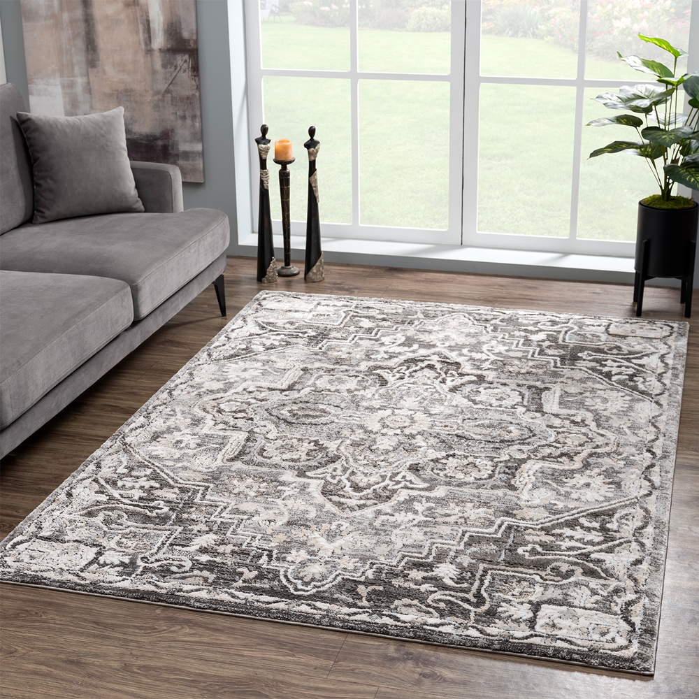 Regal and sophisticated, the elegant Portsmouth collection will bring a touch of class into your style. With modish designs and an elegant color pallet, this assortment of rugs will be the highlight of any décor. Power-loomed in Turkey using polyester and polypropylene for durability and longevity.