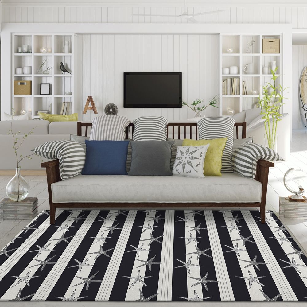 Remarkable Seabreeze collection has been created to inspire tranquility. Wow your guests with these versatile casual coastal rugs, stylish flat weave rug features vibrant colors with gradient movement in a variety of natural beach mosaic shapes and patterns. Featuring an ultra-soft and ultra thin pile, each rug is made with 100% polyester pile complete with a non-skid backing. Final crafting in USA using domestic processing on an imported substrate. They are UV Stabilized for indoor and cover outdoor spaces. Shake out or use straight suction with vacuum, do not use a beater bar. Machine washable in cold water and air dry, some sizes may be too large for a residential washing machine and is family and pet friendly.