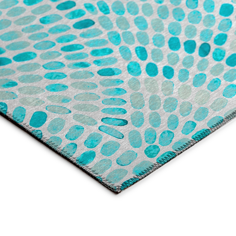 Remarkable Seabreeze collection has been created to inspire tranquility. Wow your guests with these versatile casual coastal rugs, stylish flat weave rug features vibrant colors with gradient movement in a variety of natural beach mosaic shapes and patterns. Featuring an ultra-soft and ultra thin pile, each rug is made with 100% polyester pile complete with a non-skid backing. Final crafting in USA using domestic processing on an imported substrate. They are UV Stabilized for indoor and cover outdoor spaces. Shake out or use straight suction with vacuum, do not use a beater bar. Machine washable in cold water and air dry, some sizes may be too large for a residential washing machine and is family and pet friendly.