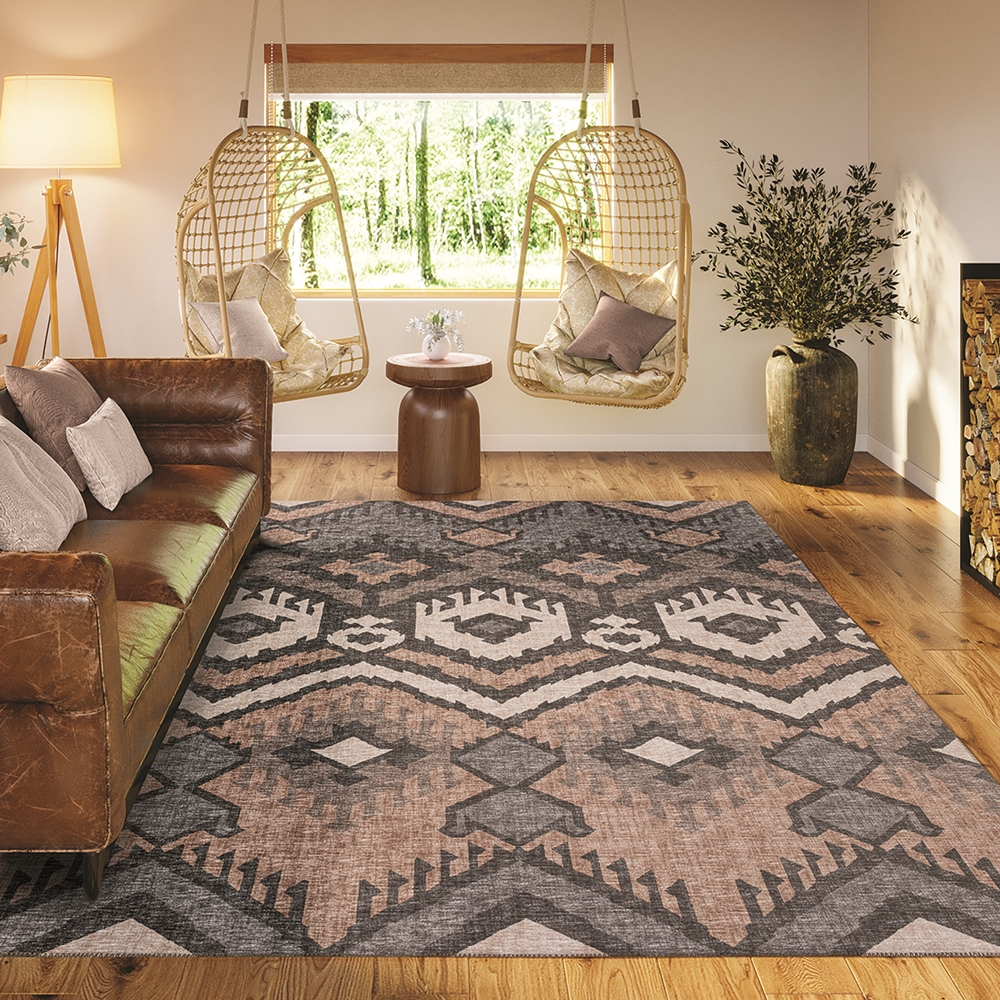 The Sedona collection is a beautiful mix of global inspiration found throughout the world. Featuring an ultra-soft and ultra thin pile, each rug is made with 100% polyester pile complete with a non-skid backing. Final crafting in USA using domestic processing on an imported substrate. They are UV Stabilized for indoor and cover outdoor spaces. Shake out or use straight suction with vacuum, do not use a beater bar. Machine washable in cold water and air dry, some sizes may be too large for a residential washing machine and is family and pet friendly.